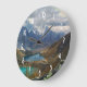 Eine Uhr mit einem schönen Naturfoto. Mit schneebedeckten Bergen und ruhigen Teichen, eingebettet in das Tal dieser majestätischen Berge.