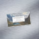 Magnetische Visitenkarte mit einem schönen Naturfoto. Mit schneebedeckten Bergen und ruhigen Teichen, eingebettet in das Tal dieser majestätischen Berge.
