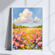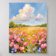 Landschaftsgemälde mit rosa Blumenfeld Poster