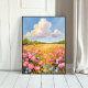 Poster Art Landschaftsgemälde mit rosa Blumenfeld