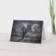 Eine beängstigende Halloween-Illustration: Landschaftsspötchen mit Vollmond, Wolken und einer dunklen Silhouette mit einer hängenden Spinne.