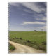 Landstraße, die zwischen Weizenfeldern twining Notizblock
