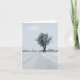 Schneesichere Landstraße in Schweden an einem kalten Wintertag. Grosser Baum neben der Straße und ein kleines Dorf in der Ferne. Fotografie.