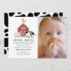 Dieses niedliche und moderne "oink, moo, cock-a-doodle do" geschlechtsneutrale Foto zum 1. Geburtstag bietet ein Schwein, Huhn und Kuh mit einer roten Scheune auf weißem Hintergrund. Die Rückseite weist einen weißen Hintergrund mit schwarzen Kuhmustern auf. Personalisieren Sie Ihre Bedürfnisse. In meinem Geschäft finden Sie passende Produkte.