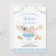 Eine Farm Tiere und blauer Gingham Geburtstagseinladung für die Geburtstagsparty Ihres kleinen Jungen oder Mädchens. Alle Texte sind editierbar - geeignet für jedes Alter!