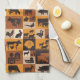 Ein Küchentuch für landwirtschaftliche Nutztiere, das in bunten, kontrollierten Tieren in Brauntönen in Titan-, Orange- und Braunblöcken gehalten wird