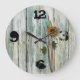 Landuhr mit Bild des hölzernen Hintergrundes. Sonnenblume fügt dieser Landzeit hinzu. Vervollkommnen Sie für einen Fallmotiv- oder -Zuhauselanddekor