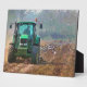 Vorbereitung auf die nächste Ernte. Der Traktor pflügt (pflügt) das Feld, und Wildvögel suchen nach Nahrung im frisch gedrehten Boden. Watercolor England.
