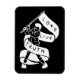 Dieses Design zeigt einen Mann, der eine Protestflagge mit der Phrase "Langlebige Wahrheit" ausmeldet.