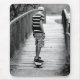 Das ist ein cooles Schwarz-Weiß-Foto eines Teenagers, der auf seinem Langboard über eine alte Brücke fährt. Dies ist ein perfektes Beispiel für etwas Altes und Wunderbares, das noch mit etwas Neues und Wundervollem genossen wird.