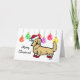 Weihnachtskarte der Creme Dackel für Dackel Besitzer!! Eine bezaubernde Dackel lächelt mit ihrer Weihnachtsmannmütze!! Bunte Ornamente im Hintergrund. Sie können Text und mehr anpassen! Einzigartige und lustige Hundekunst von Naomi Ochiai aus Japan.