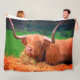Diese Fleecedecke hat eine lange Hornkuh, die darauf abgebildet ist.