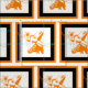 Orange Longhorn steuern einen Cowboyhut mit weißem Hintergrund. Es gibt auch einen schwarz-orangefarbenen Rahmen. Dieses Design ist auch für andere Artikel im Rodeo-Tage-Shop erhältlich.