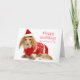 Langhaarige Dackel, die ein rotes Weihnachten