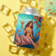 Langhaarige Meerjungfrau mit einem Martini-Cocktail sitzend auf einer seltsamen Seepferd/Giraffe-ähnlichen Kreatur unter Wasser, um sich anzupassen, personalisieren, indem Sie Ihren Namen ändern