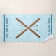 Langlaufskier und Skistöcke aus Holz überragen auf einem verschneiten Hintergrund. Es gibt zwei Orte, an denen du deinen eigenen Text hinzufügen kannst.