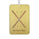 Langlaufskier und Skistöcke aus Holz auf einem braunen Lederhintergrund. Fügen Sie Ihren eigenen Text hinzu.