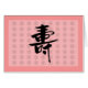 Langlebigkeit (Shou). In der chinesischen Gewohnheit sollte solche Karte vorwärts gegeben werden den älteren Personen auf ihrem 60. Geburtstag. Selbstverständlich kann man beschließen, solches gute auch grüßen zu schicken ihren Eltern, selbst wenn sie unterhalb 60 Lebensjahre sind.