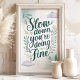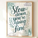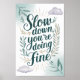 Mit diesem beruhigenden "Slow Down, You're Doing Fine"-Kunstdruck finden Sie Ruhe und Akzeptanz für den aktuellen Moment. Mit seinem eleganten Drehbuch, umgeben von zarten Aquarellfarben-Blätter und Wolken, dient dieses Stück als sanfte Erinnerung, die einfachen Lebensfreude zu unterbrechen, zu atmen und zu schätzen. Ideal, um Ihrem Schlafzimmer, Wohnzimmer oder Arbeitsbereich eine Touch der Ruhe hinzuzufügen.
