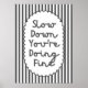 Mit diesem Slow Down You're Doing in beruhigenden Grautönen lassen Sie Ruhe und Sicherheit in Ihren Raum. Diese minimalistische Wandkunst trägt eine sanfte motivierend Botschaft, die uns daran erinnert, in unserem eigenen Tempo zu halten, zu atmen und das Leben zu nehmen. Ideal für Schlafzimmer, Büros oder als nachdenkliches Geschenk für Freunde, Familie oder jeden, der ein wenig tägliche Förderung braucht.