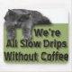 Eine faule Katze trappte über die Worte "Wir sind alle Langsame Tropfen ohne Kaffee."