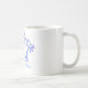Schöne Tasse des weißen Kaffees mit reizenden blauen Palmen