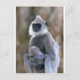 Graue Langur oder Hanuman langur (Semnopithecus entellus) Affe, die beim füttre des Kindes abdockt.