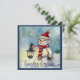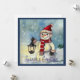 Original Aquarellmalerei von Sandra Gale mit einem in schneebedeckten Wäldern stehenden Jolly-Schneemann mit einer warmen und leuchtenden Laterne. Perfektes Design für Weihnachten, oder als Alternative, eher konzentriert auf die Magie des Winters und der allgemeinen Ferienzeit.