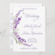 Hochzeitseinladungen mit Lavendelsträuchern auf weißem Hintergrund.