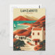 Mit dieser Vintag inspirierten Reisepostkarte gelangen Sie in die sonnenverwöhnte Landschaft Lanzarotes. Mit dem berühmten vulkanischen Gelände der Insel, den unberührten Stränden und der einzigartigen Architektur besticht diese Illustration durch den Charme und den Reiz Lanzarotes. Ob Sie dieses spanische Juwel besucht haben oder davon träumen, seine Naturwunder zu erkunden, diese Postkarte bringt Sie auf die atemberaubende Kanarische Insel, was sie zu einem Muss für alle Reisende macht.