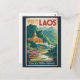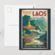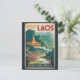Laos retro vector travel design. From the UNESCO city of Luang Prabang and the spiritual charm of Vientiane to the natural beauty of Kuang Si Falls and the Plain of Jars, Laos offers an authentic blend of nature, history, and tranquility.