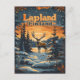 Eine ruhige und nostalgische Darstellung Lapplands, Finnlands, bekannt für seine unberührte Wildnis, verschneite Landschaften und sein einzigartiges kulturelles Erbe. Das Design besticht durch die charakteristischen Rentiere der Region, die nördlichen Lichter, die über den Nachthimmel tanzen, und die gemütlichen Blockhütten, eingebettet in schneebedeckte Wälder, die alle in einem Vintagen Stil illustriert sind. Dieses Kunstwerk vereint die ruhige Schönheit und den abenteuerlichen Geist Lapplands und lädt die Zuschauer ein, seine magische Atmosphäre und die arktischen Wunder zu erleben.