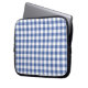 Eine stilvolle Hülle zum Schutz eines Laptops, bis zu 17 Zoll groß, mit einem modischen dunkelblauen (Monaco) und weißen Karo Gingham-Muster.