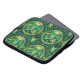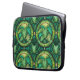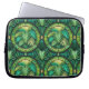 Laptoptasche mit einem lebendigen grünen botanischen Muster mit symmetrischen Farnblättern und kreisförmigen Motiven. Das Design vermittelt einen frischen und lebendigen Ton.