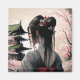 Computergeneratoren eines Geisha. Eine Frau mit einer Frisur im Blüten im Haar trägt Kimonono in einem schäfischen Design mit einem. Japanisches Design im AI - Midtravel Style. Rote Farbornamente dem Bild das gewisse.