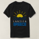 Genießen Sie diesen Sommer mit diesem Larissa, Griechenland Sonne und Meereswellen Männer schwarzen T - Shirt. Dieses Design besticht durch Sonne und Wellen mit Larissa im griechischen Schriftart mit einem großen blauen Wort Griechenland.