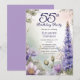 Elegant larkspur and water lilies floral design "55th Birthday Party" design featuring a floral frame of purple larkspur and water lilies on a pastel-toned watercolor background.