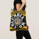 Schulter Tasche Schwarz und Gold mit Hunde-Zahn-Design auf der Vorderseite und Schwarz, Weiß und Gold konzentrischen Kreisen Design und "COLUMBIA, MISSOURI CENTER OF THE UNIVERSE" und das Große Siegel von Missouri in der Mitte und "GO TIGERS!! Columbia, MO" rechts im Skript mit Y-NOT-ME. Dieses Design ist ein Ausruf nach Columbia, Missouri, einer großartigen Universitätsstadt.