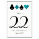 Schwarz-aquamarine Glitzer-Karten-Anzug glänzen auf dieser Vegas-Motive doppelseitig weiße Tischnummer ist eine hervorragende Ergänzung zu Ihrem Empfang-Dekor. Personalisieren Sie den gesamten Text einschließlich Tabellenname, -nummer und kreieren Sie mit den beiden Textzeilen am unteren Rand mit Ihren neuen Nachnamen, dem Hochzeitstermin, dem Ort und sogar benutzerdefinierten Tischnamen oder einer personalisierten Anmerkung zu Ihrer Liebe.