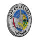 Dieses Design zeigt das Siegel von Las Vegas (offiziell als die Stadt von Vegas bekannt), die bevölkerungsreichste Stadt im Staat von Nevada, und der Landkreis Sitz von Clark Landkreis. Auf Spanisch bedeutet "Las Vegas" "Die Wiesen", die die Geschichte der Stadt widerspiegeln. Las Vegas ist eine international renommierte Urlaubsstadt, die vor allem für ihr Glücksspiel, ihre Einkäufe, ihre guten Speisen, ihre Unterhaltung und ihr Nachtleben bekannt ist. Las Vegas liegt im Zentrum des Großstadtviertels Las Vegas und ist die größte Stadt der Mojave Wüste. Das Las Vegas Tal als Ganzes dient als führendes Finanz-, kommerziell- und Kulturzentrum für Nevada. Las Vegas ist manchmal als "Amerikas Spielplatz", "Die Unterhaltung Hauptstadt der Welt" oder "Sin City" bekannt.