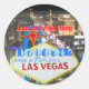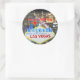 Las Vegas Finalfling oder Junggeselinnen-Abschied Aufkleber machen Spaß, die Umschläge auf Ihre Einladungen Siegel. Oder als Dekoration auf Tassen, Getränkeflaschen und Geschenktaschen. Diese Sonderversion des berühmten Las Vegas Begrüßungszeichens auf dem Strip hat ein Foto aus der Luft der Neonlichter des Las Vegas Boulevard in der Nacht im Hintergrund.