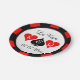 Las Vegas Hochzeitsfeier Poker Chip Design Papier Teller Rot und Schwarz mit Spielkarte Anzug Icons. König und Königin der Herzen mit schwarzer Pik. Fügen Sie Ihren eigenen personalisierten Namen der Braut und des Bräutigams sowie das Ehedatum hinzu. Party für verheiratete Paare / Neuvermählte. Casino Spieldesign Vorlage. Ideal für Kuchen, Snacks, Abendessen und vieles mehr.