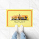 Dekorative Fronttüren-Design mit Las Vegas Nevada City Skyline-Silhouette mit Sonnenuntergang Aquarell auf hellgelbem Hintergrund und Koordinaten für Breiten- und Längengrad