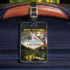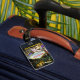 Las- Vegasgepäckumbau mit cooler Streifenansicht mit Nachtzeitneonkasinolichtern und berühmten Sehenswürdigkeiten. Text-Vorlagen zu einfacher personalisierter Information für indviduals oder Reise-Agenten und Ausflugbetreiber.