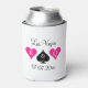 Las Vegas Thema mit Monogramm Hochzeit kann Kühler. Neon rosa und schwarz Spielkarten Anzug mit Namen Initialen von Braut und Bräutigam plus Datum der Ehe. Elegante Skripttypografie. Niedlicher Poker-Getränkehalter mit stilvollem Monogramm. Auch schön für gemütliche Verlobung oder Jubiläum Party. König und Königinnen der Herzen gestalten.