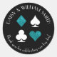 Imitate aquamarine Glitzer- und weiße KartenAnzüge sind durch einen anpassbaren Text umgeben, der diese runden Aufkleber perfekt für alle Arten von Projekten und Anlässen macht. Verwenden Sie sie, um Lieblinge für Hochzeitsgäste, nahe Umschläge und mehr zu kennzeichnen.