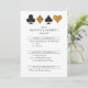 Diese Timeline-Karte eignet sich ideal für eine Vegas-Hochzeit oder ein Casino-Event. Sie bietet Imitate mit Gold-Glitzer und Black-Card-Anzügen auf weißem Hintergrund mit vollständig benutzerdefiniertem Text und einem passenden Backer. Inklusive der Einladungen Ihrer Gäste oder in Ihre Begrüßungstaschen, wird diese gedruckte Zeitleiste helfen, die Gäste in dem Wissen behalten, was wann und wohin sie gehen sollen.