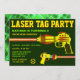 Erleben Sie Ihren Geburtstag mit dieser lustigen Geburtstagsparty, die mit coolen Lasertag-Kanonen und lebendiger Typografie vor dunkelgrünem Hintergrund aufwartet. Fügen Sie einfach Ihre Veranstaltungsdetails zu dieser einfach zu bedienenden Vorlage hinzu, um sie zu einer einmaligen Einladung zu machen.