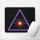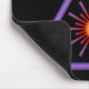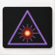 Schwarzes mousepad mit orange und lila Warnsymbol Lasers.