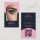 Elegante lash-Stylist-Visitenkarte mit modernem QR-Code, Arch-Foto-Design und schicken rosa und marineblau. Ideal für Künstler, Makeup-Profis, Schönheitssalons und Ästhetiker, die eine stilvolle und berufliche Karte gewollt haben, um die Gäste zu beeindrucken. Passen Sie Ihren Namen, Ihre Kontaktdaten an.